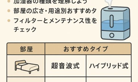 加湿器を購入しようとしたときに必ず悩むのが、「どのタイプを選ぶべきか?」という点です。スチーム式・超音波式・ハイブリッド式・気化式──それぞれに仕組み・特徴・メリット・デメリットがあり、どれが最適かは使用環境によって異な…