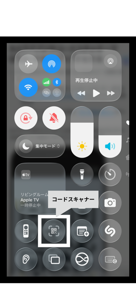 コントロールセンターを開き「コードをスキャン」ボタンをタップ。